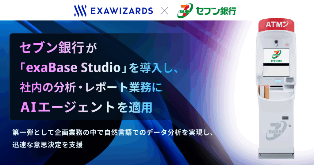 セブン銀行が「exaBase Studio」を導入し、 社内の分析・レポート業務にAIエージェントを適用 ~第一弾として企画業務の中で自然言語でのデータ分析を実現し、迅速な意思決定を支援~