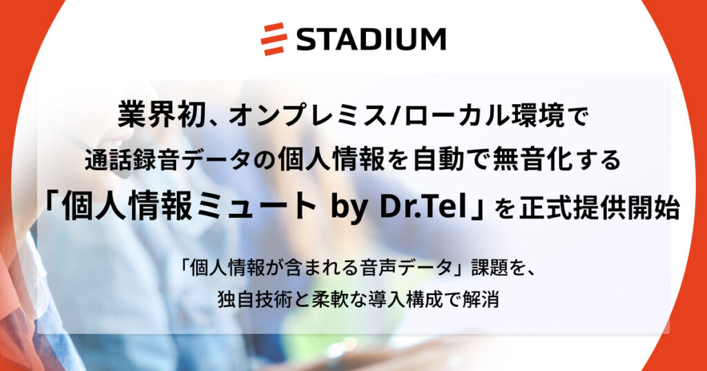 業界初*1、 オンプレミス/ローカル環境で通話録音データの個人情報を自動で無音化する「個人情報ミュート by Dr.Tel」を正式提供開始 ~「個人情報が含まれる音声データ」課題を、独自技術と柔軟な導入構成で解消~