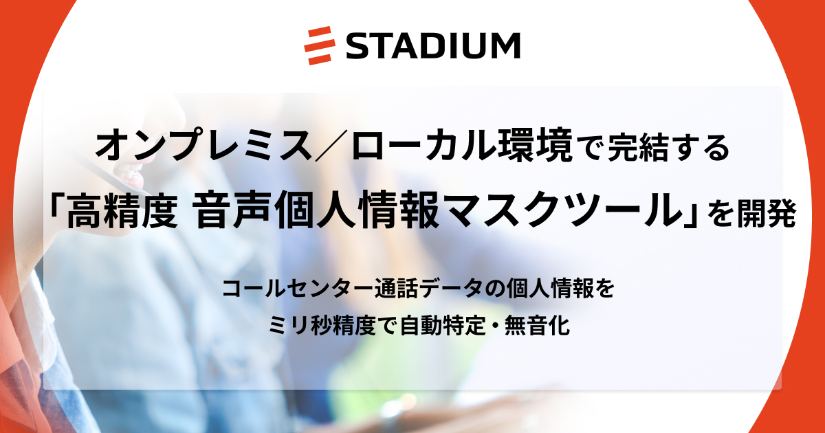 スタジアムが、オンプレミス/ローカル環境で完結する「高精度 音声個人情報マスクツール」を開発 ~コールセンター通話データの個人情報をミリ秒精度で自動特定・無音化~