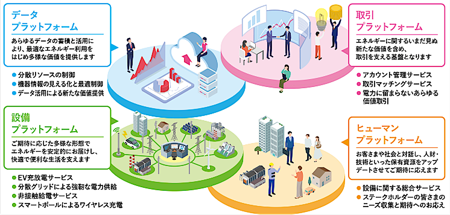 「どのデータをどう見たら何の意思決定ができるのか。分かっているようで分かっていないということが、やっていく中で見えてきました。もっと試行錯誤して失敗を積み上げないと、なかなか答えは出てこない。 」 「弊社では物理、データ、取引という3つのレイヤーでエネルギープラットフォーマーを定義しています。一番下の物理(電柱や鉄塔)はすでに存在していますが、その上のデータプラットフォーム層が今申し上げた通り非常に難しく、なかなか進まない。さらに上の取引レイヤーは、プラットフォームレベルではまだまだハードルが高いのが現状です」 |
