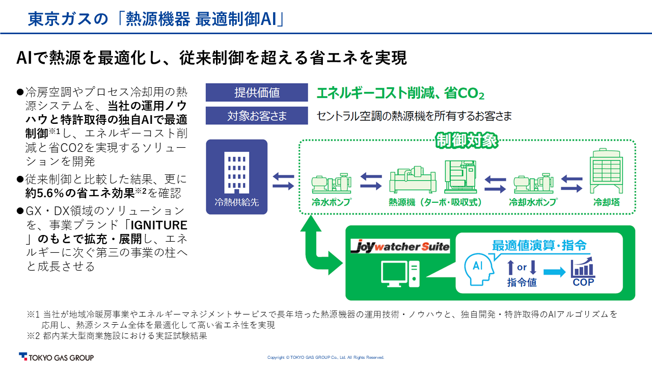 東京ガスの「熱源機器 最適制御AI」詳細資料