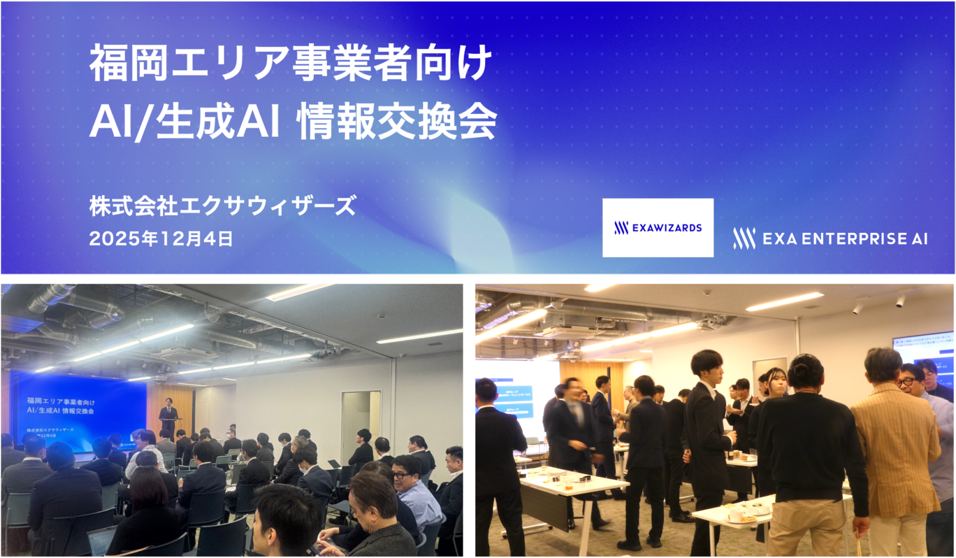 株式会社エクサウィザーズ(以下、エクサウィザーズ)は、ふくおかフィナンシャルグループ(以下、FFG)と共催で、2025年12月4日に福岡で「生成AI/AI情報交換会」を開催しました。
