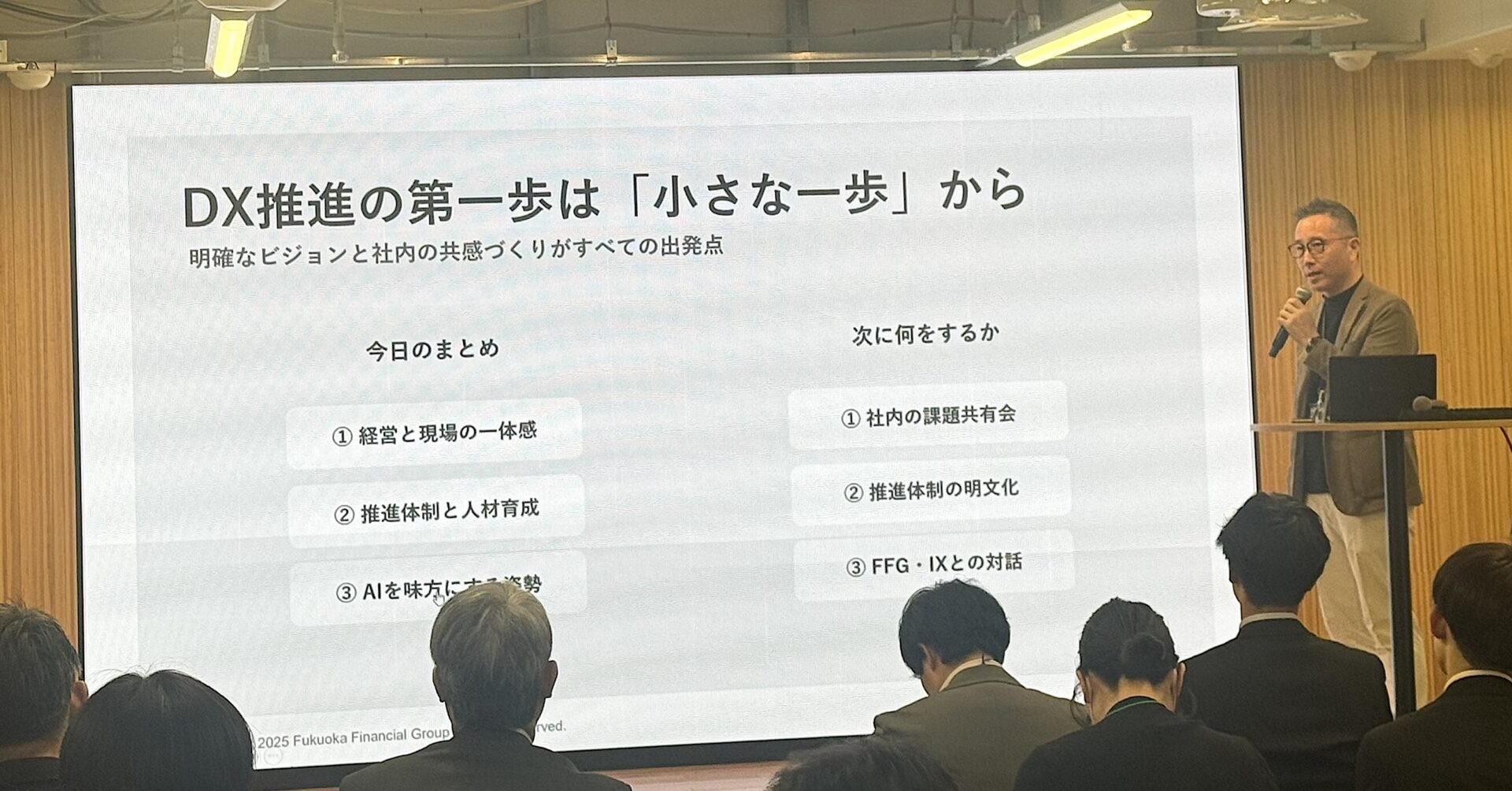 地域経済を牽引する金融機関が、技術導入にとどまらない、企業文化や人材の変革までを含むFFGの総合的な取り組み姿勢は、参加者のAI導入計画における視座を高める貴重なヒントとなりました。
