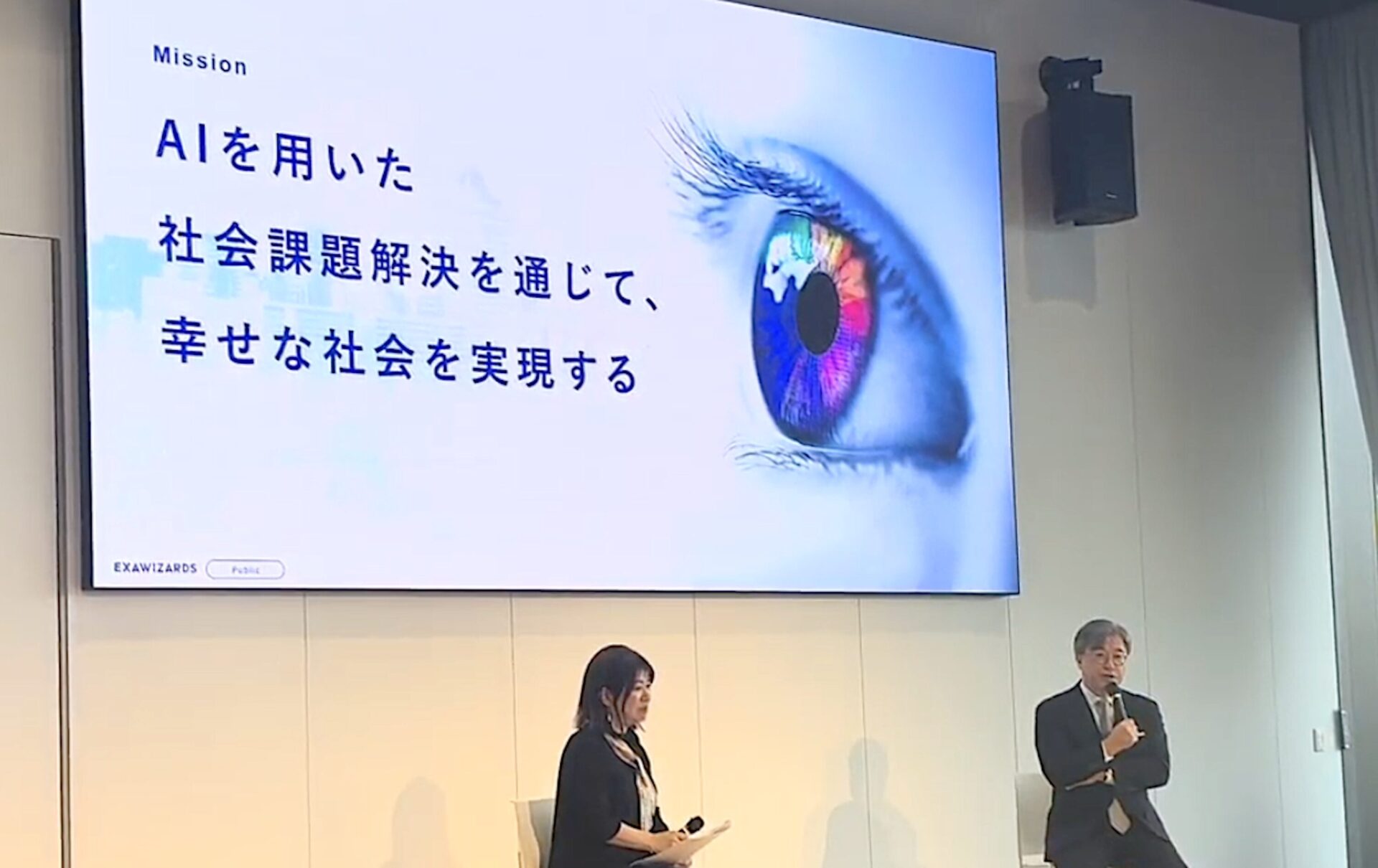 スクリーンではエクサウィザーズのミッションを紹介