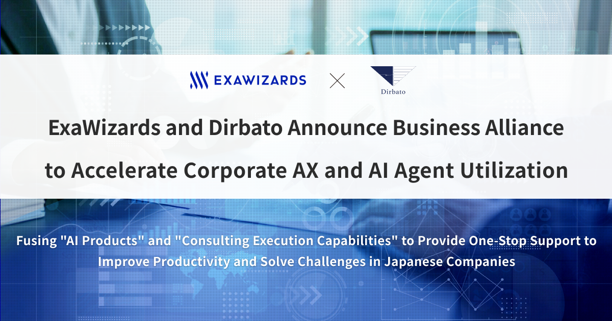 ExaWizards and Dirbato Announce Business Alliance to Accelerate Corporate AX and AI Agent Utilization — Fusing “AI Products” and “Consulting Execution Capabilities” to Provide One-Stop Support to Improve Productivity and Solve Challenges in Japanese Companies —