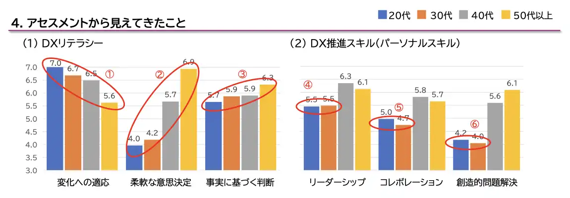 こうした結果から、中堅・ベテラン層には変化へ適応していくための施策が必要であり、若手層には柔軟な意思決定をするために必要な考え方や姿勢を身につけることが必要ということが見えてきました。
