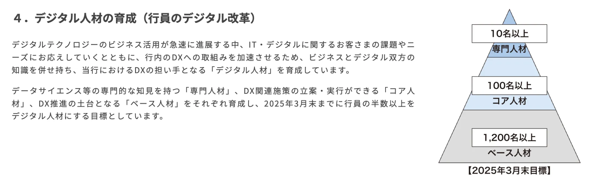こうした標準を定めることで、人材育成の方向性を明確にし、将来的な全行員のデジタル人材化を見据えた育成に取り組むことにしました。