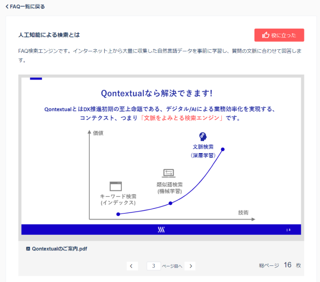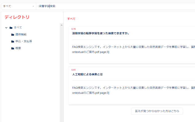 文脈を理解するエンジンを搭載したことで、従来のキーワード検索に加え、同じ意味を成す答えを幅広くマッチング。