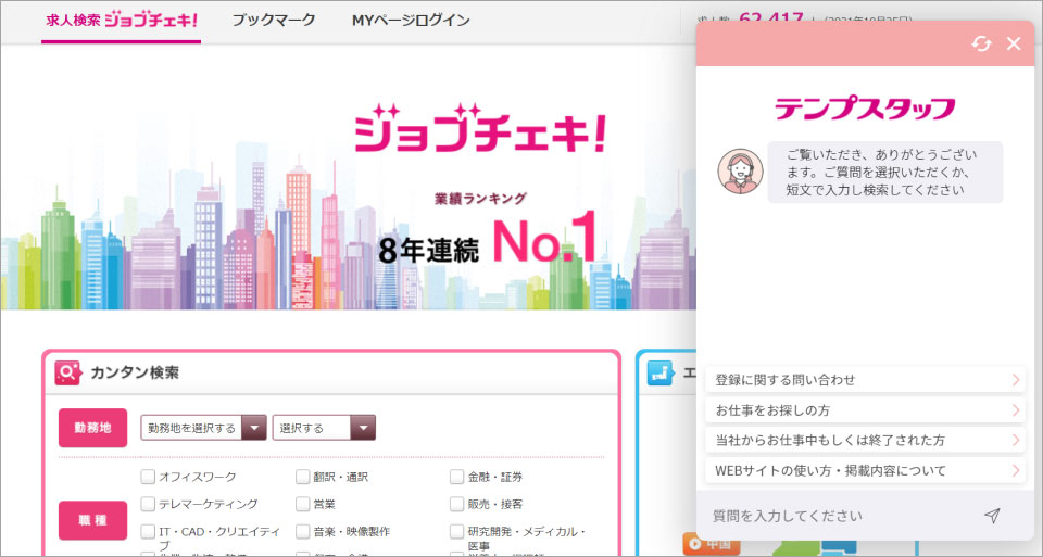 | 用途 | 派遣求人検索サイト「ジョブチェキ!」におけるチャットボット |