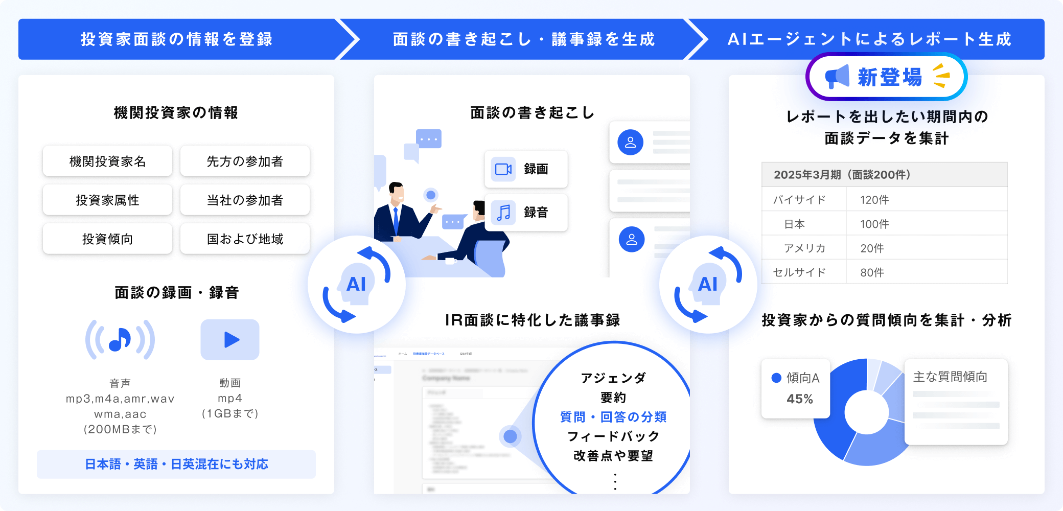 録音・録画データでAIが作成した議事録・レポートを基盤にIR取材に特化した投資家データベースを構築