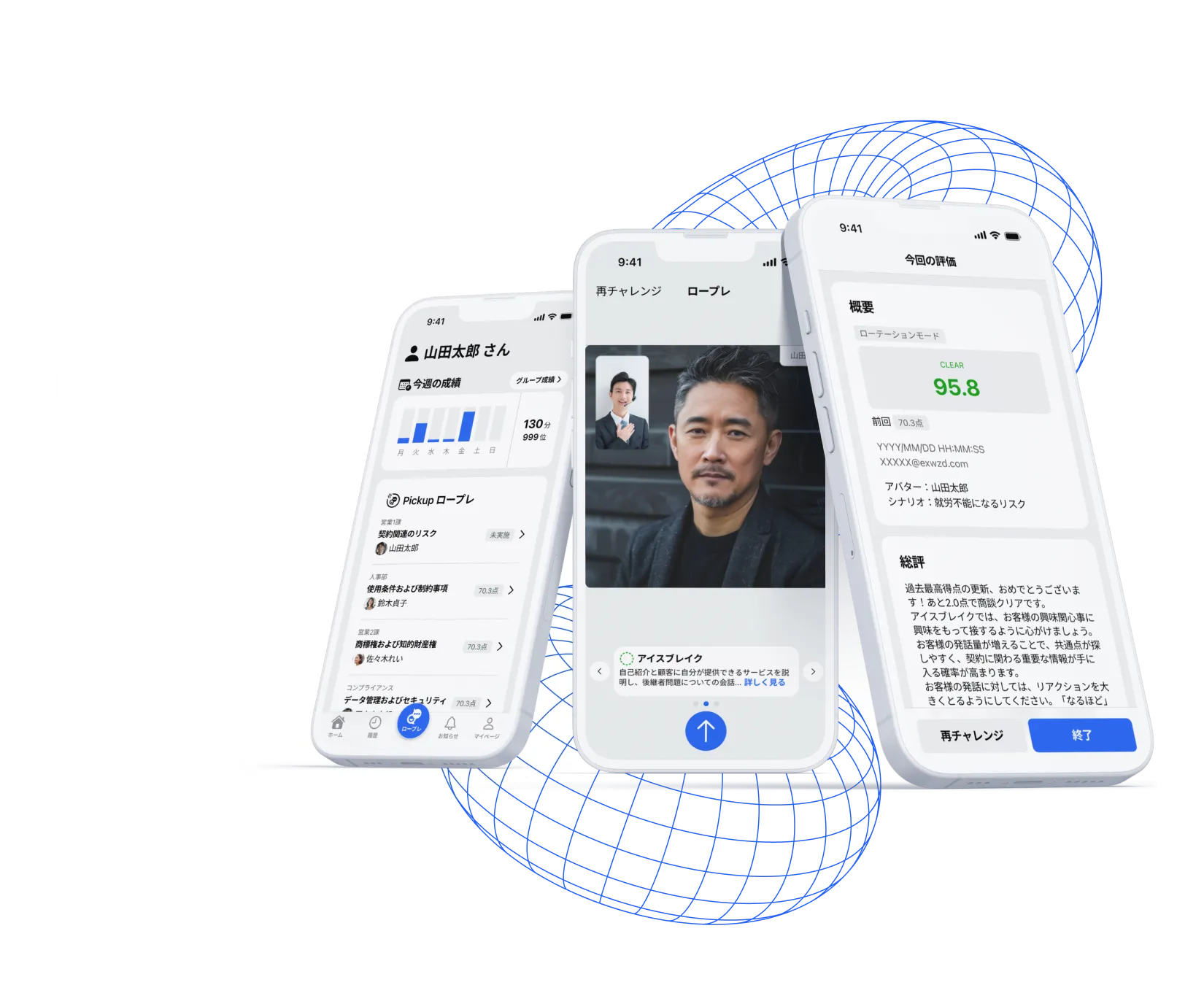 AIが会話内容を即時でスコア化し、改善点をフィードバック。主観に依存しない公平な評価で、スキルの定着と改善をサポートします。